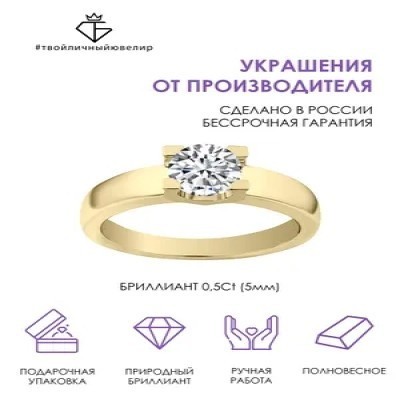 Кольцо золотое с бриллиантом помолвочное женское 585 пробы ТВОЙЛИЧНЫЙЮВЕЛИР